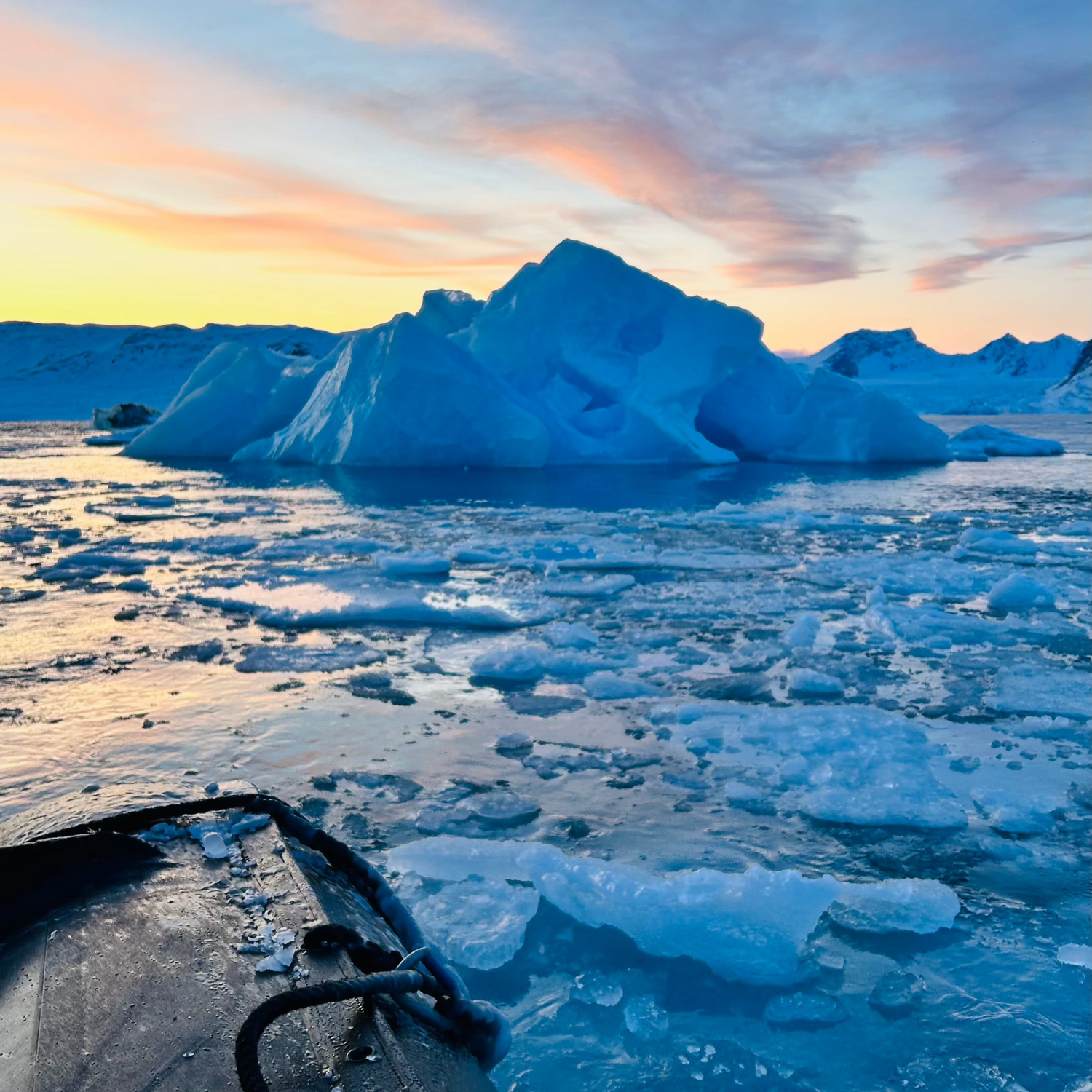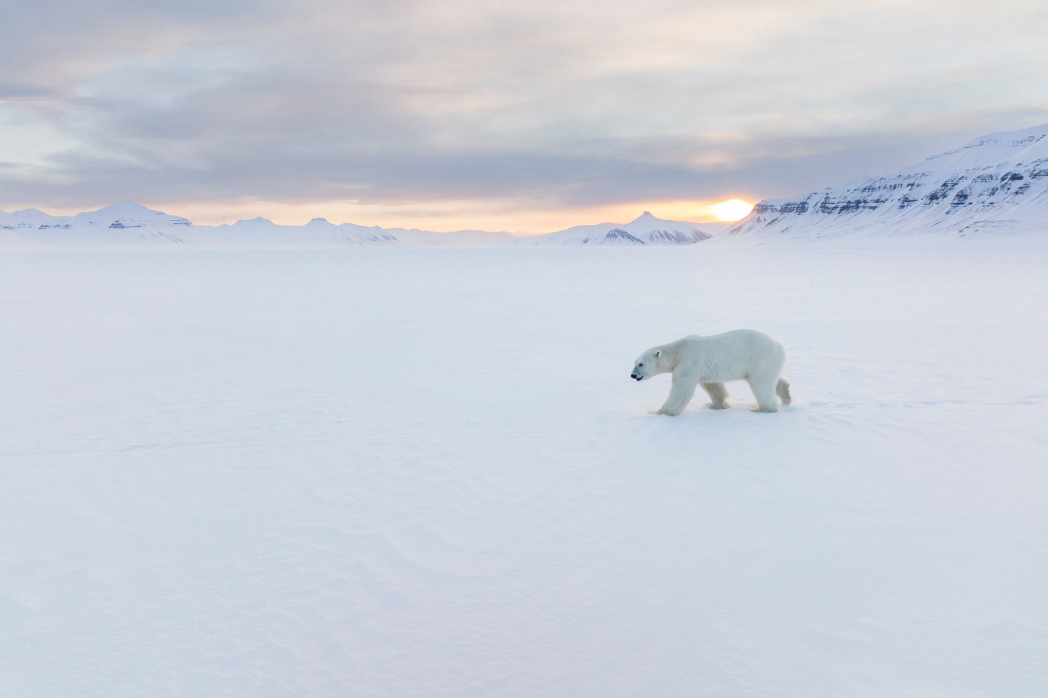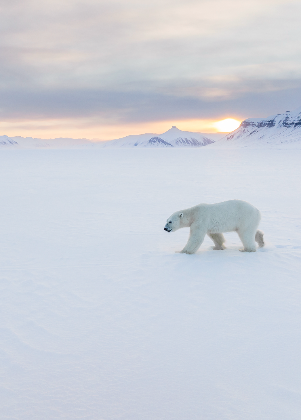 C’est un moment très spécial de l’année : le début du printemps arctique, quand la lumière revient après 6 mois d'obscurité. Face à vous, des nuances infinies de blanc et de bleu forment un paysage sculpté par toutes les formes de glace possibles. Le soir venu les fjords se teintent de rose et d’or au coucher du soleil. Soleil qui ne se couche jamais vraiment et rend ce mois d'avril si unique. Tel un des explorateurs sur une autre planète, nous nous créerons un chemin parmi les glaces mouvantes, bercés par les éléments.