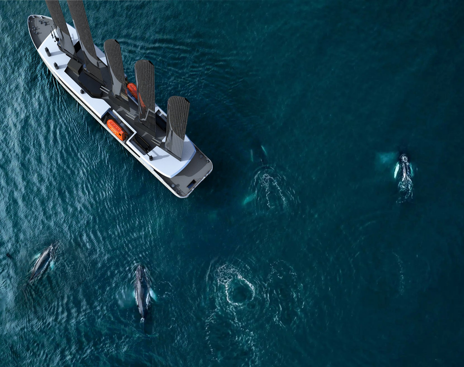 2. CLEAN ELECTRIC PROPULSION : When the sails can harness wind, our ship relies on two propeller shafts that produce energy and act as hydro turbines.